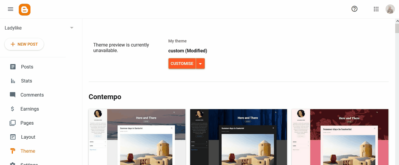 Once uploaded save your theme and refresh your blog to see the new theme.